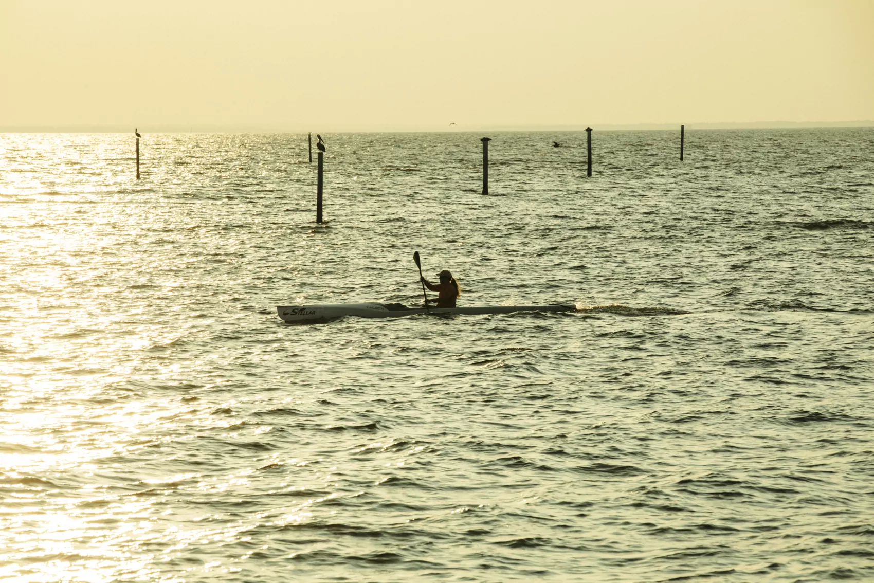 “It has its moments when it’s two in the morning, and you’re on the water, and you’re hallucinating. It’s a weird feeling. You can’t stand up; you can’t lie down. You’re just stuck in that one position sitting in your boat. But it cools off. It’s quiet. The wind dies down. And that’s when you do some of your best paddling,” says Gillikin. “Then there’s the time I call ‘the dark dark’ between the sun setting and the moon rising. I get out there in the dark dark, and I have to use my GPS to stay on the river because I can’t see the bank, and I hope I don’t hit anything. But then, once the moon comes up, it all gets better. Everybody knows about sunsets and sunrises, but I’ve seen a lot of moonsets and moonrises, and those are beautiful, too.”